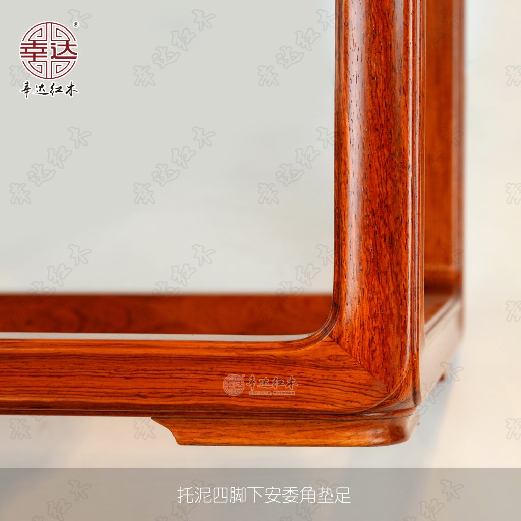 然而,“囧凳”之名虽戏谑,其形制却极为考究。它采用标准的格角榫攒边框工艺,凳面四框内缘踩边打眼造软屉,边抹上沿起委角线,四角圆形,既美观又实用。腿足端以粽角榫与椅盘和托泥相接,结构稳固,线条流畅。尤其值得一提的是其菱形一弯霸王枨,以钩挂垫楔榫下接腿足,上连托带,不仅增强了整体稳定性,更在视觉上形成了一种优雅的弧度,宛如一道优美的弧线划过空间。