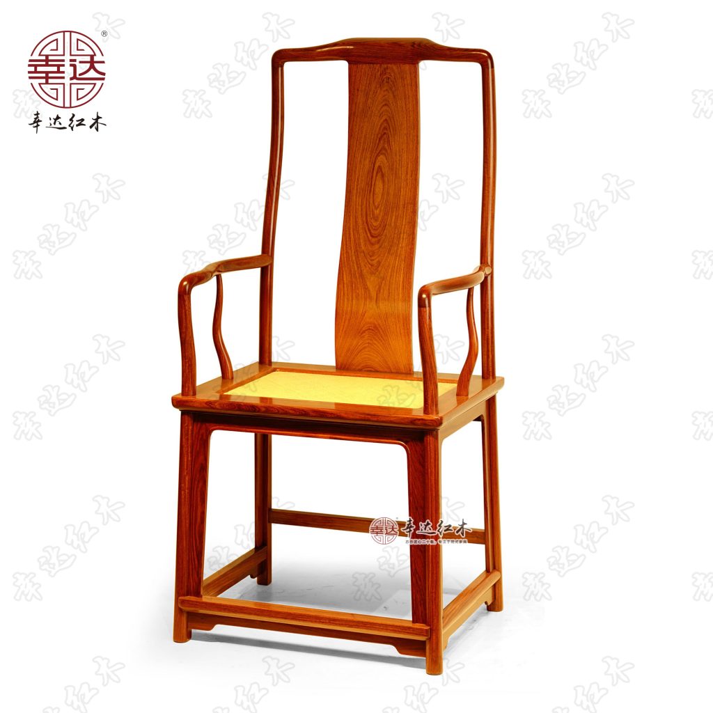 南官帽椅为典型明朝椅具。明朝时各种椅具有等级之分,大型与高靠背椅子被视为较重要之座席,是府中主人与身份地位较高的宾客专用。此例靠背特别高,当时是非常重要人士之座具。