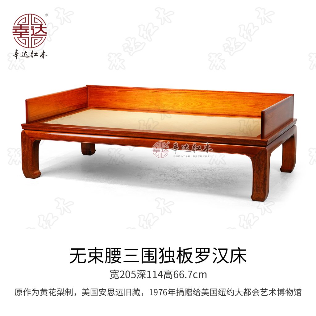 无束腰三围独板罗汉床,原作黄花梨制,始制于明代晚期,