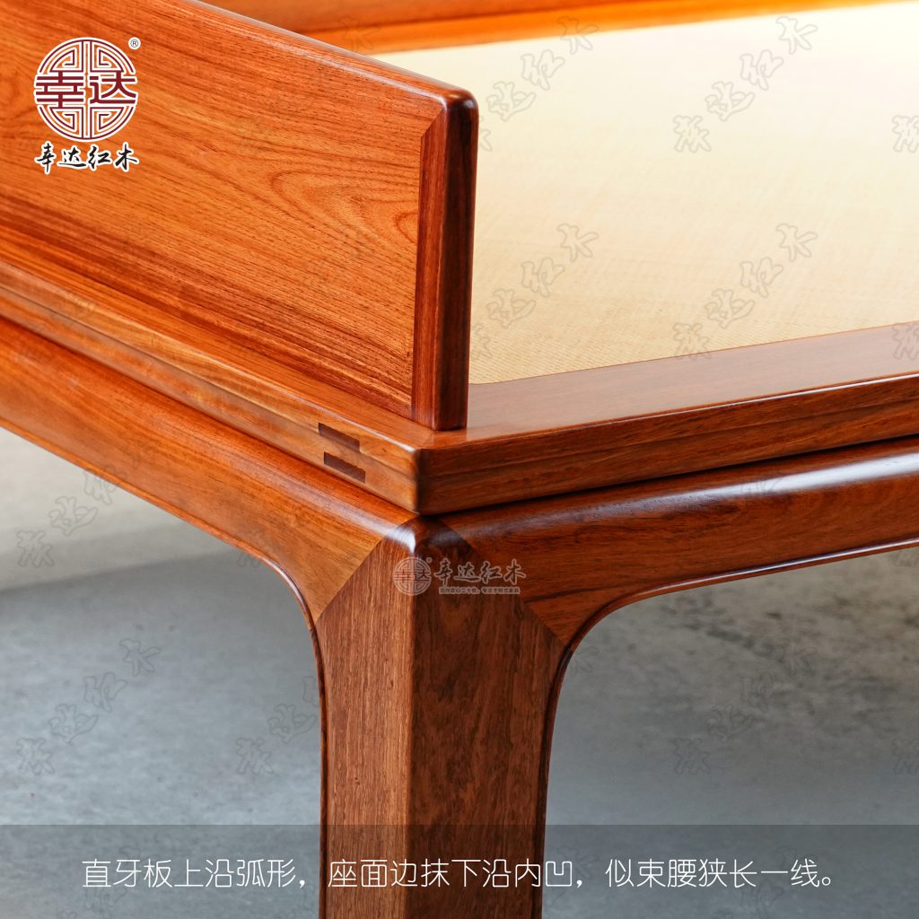 直牙板上沿弧形,座面边抹下沿内凹,似束腰狭长一线。